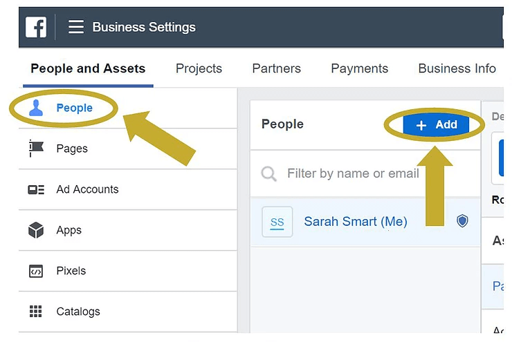 In this dialog box, enter the person’s Facebook name or email address. Then, use the drop-down menu to select the appropriate role, such as: