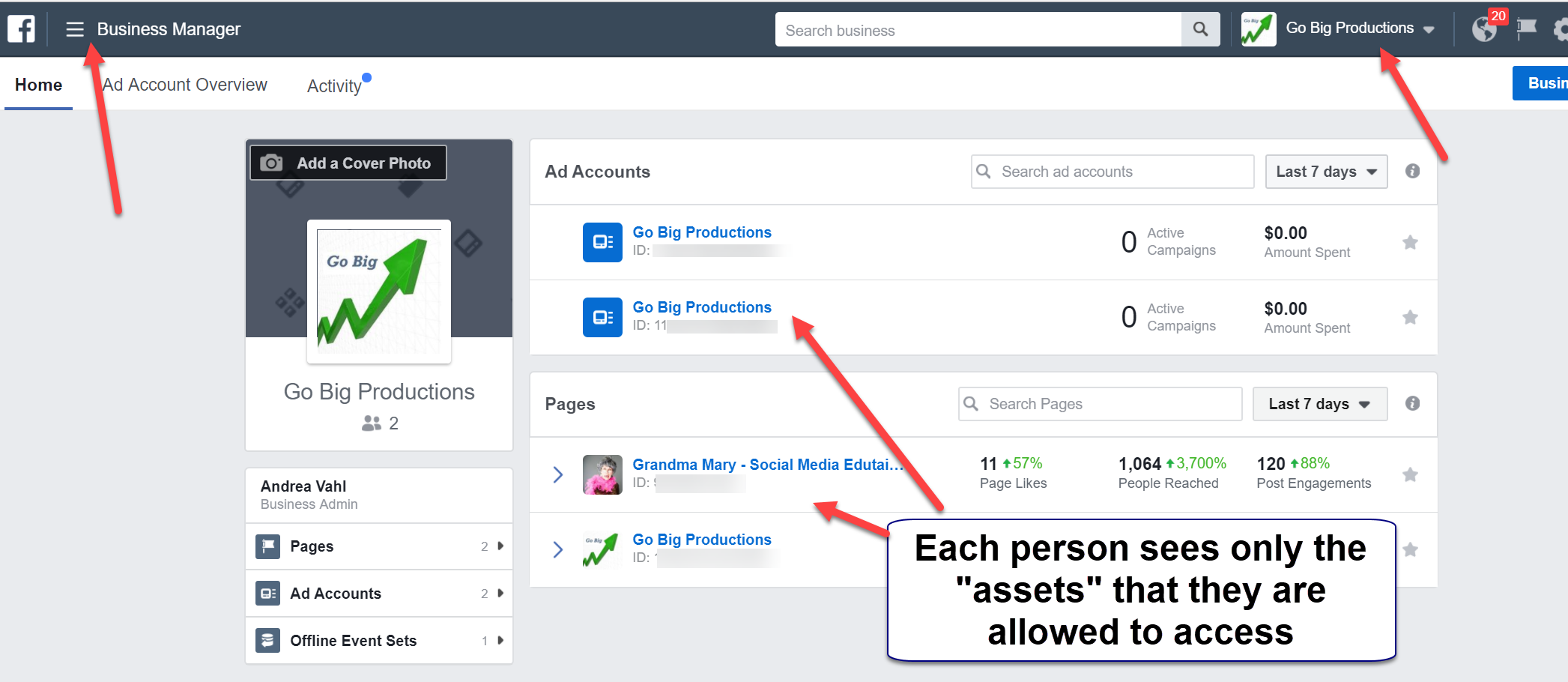 Business Manager is not just a place to consolidate assets; it also comes with many administrative support features: